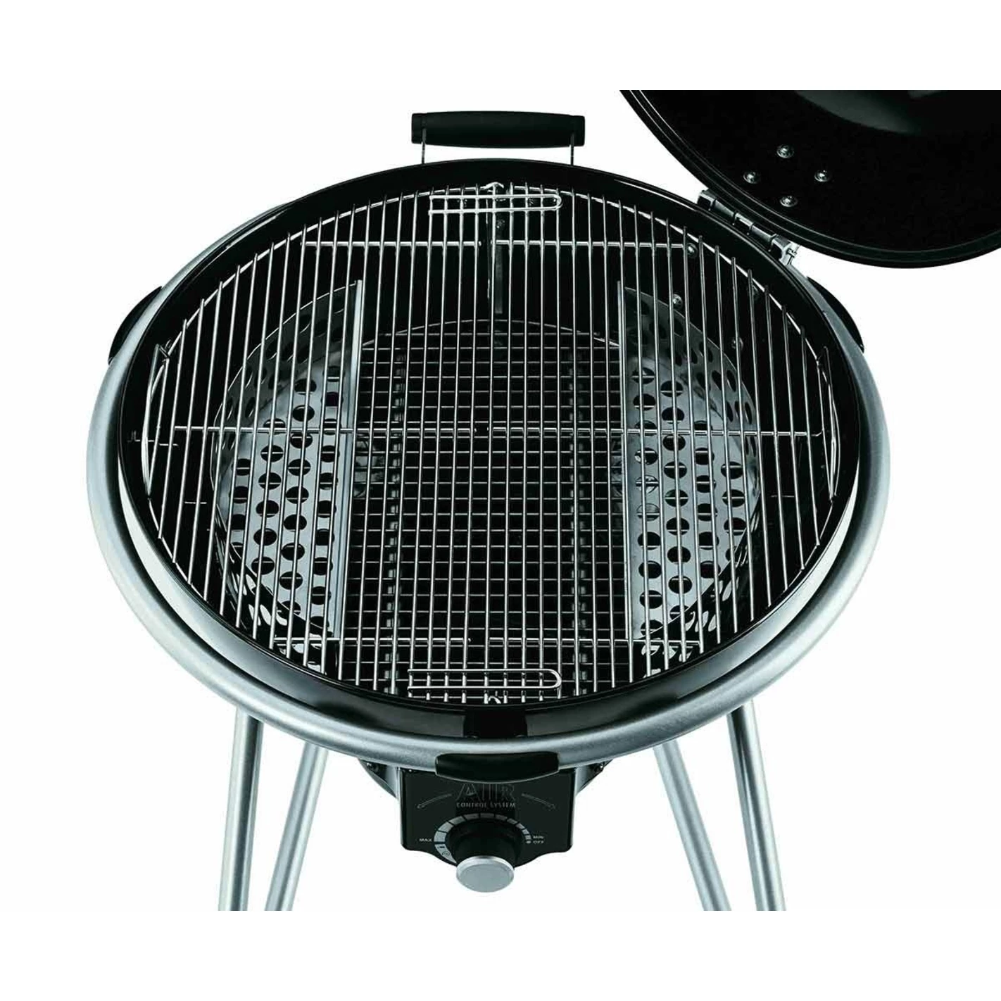 La charnière de couvercle garantit une ouverture à 45 degrès et une fermeture rapides d’une seule main. Extra haut, le couvercle garantit un grand espace de cuisson qui offre suffisamment de place pour des accessoires comme des pinces, des supports de côtelettes ou des supports à poulet.