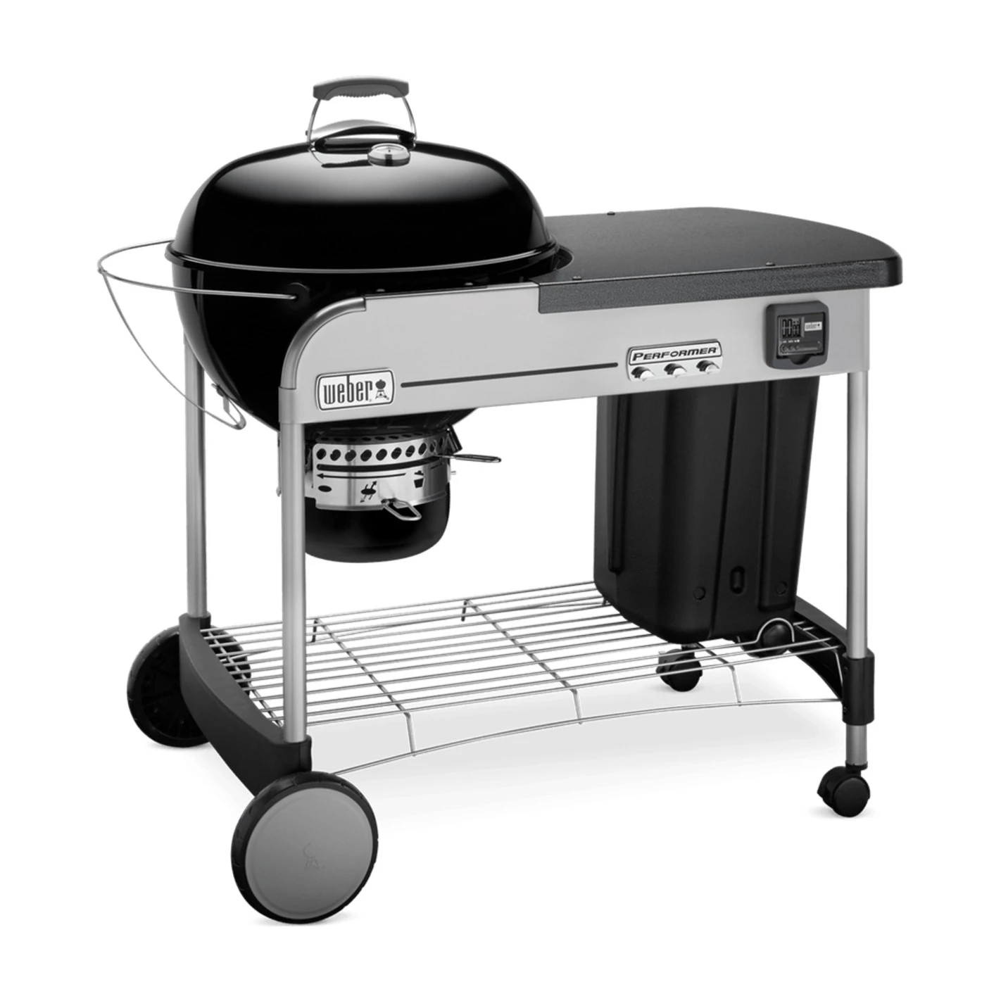 Intégré au barbecue, le chariot en acier du Performer Premium possède 2 principaux éléments distinctifs de son homologue Original :