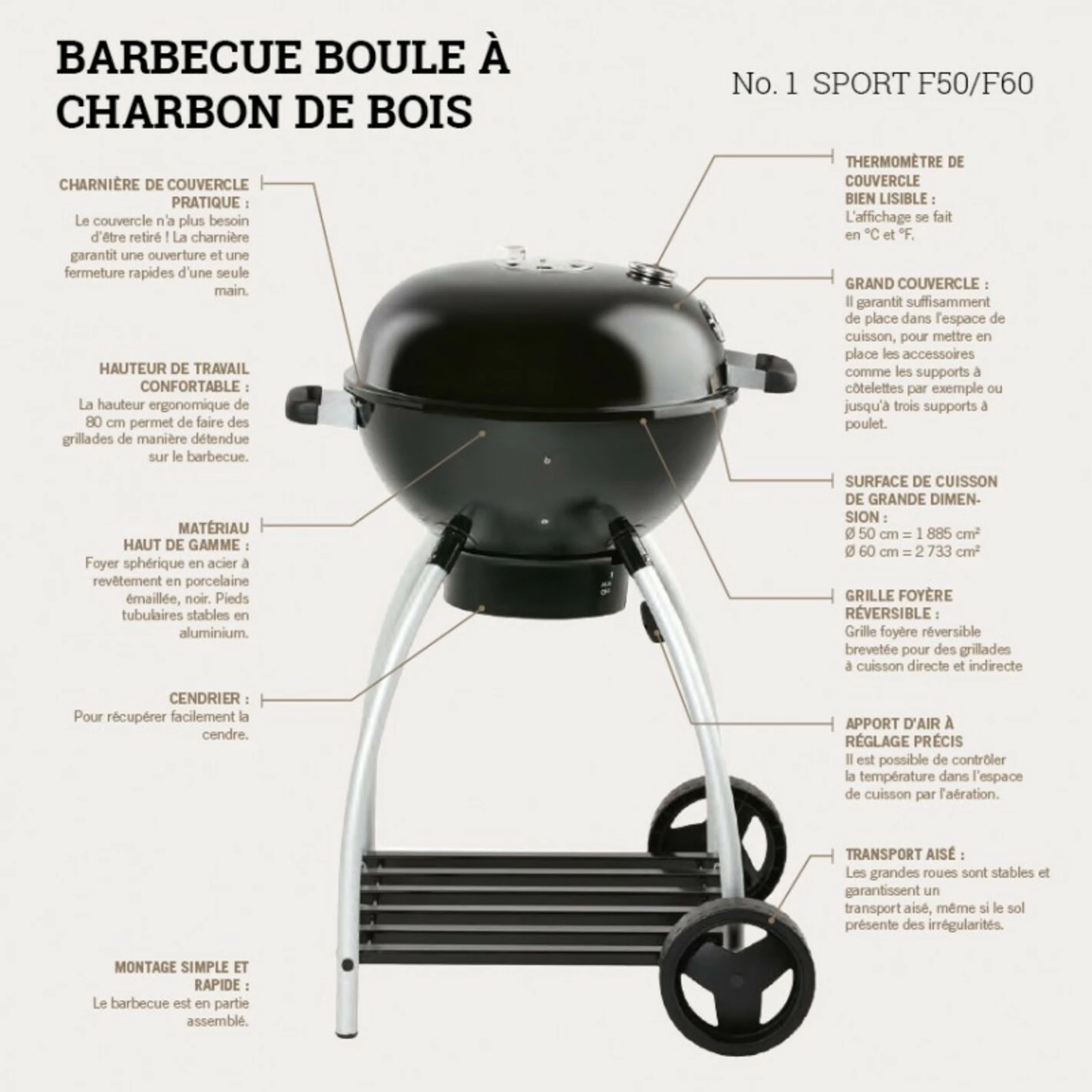 Les atouts du barbecue à charbon de bois F50 Sport :