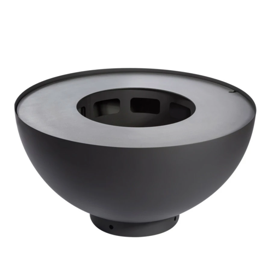 L’acier de la vasque est couvert d’une couche de peinture noire pour un design moderne épuré. En plus de son aspect esthétique, elle protège le métal de la corrosion. Capable de résister à la chaleur intense du feu de bois, elle est également adaptée à une utilisation en extérieur. Elle ne craint ni la pluie, ni la neige, ni les rayons UV.