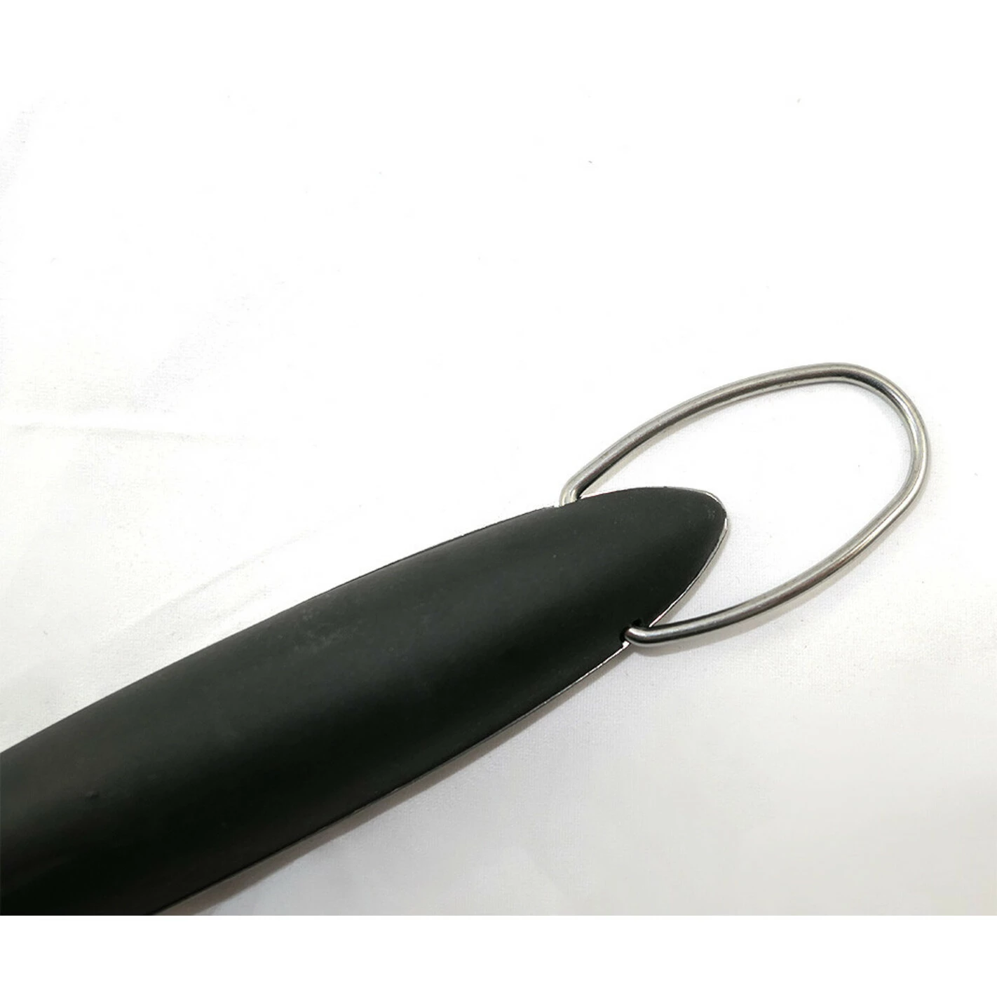La fourchette équipée d’un crochet se suspend sur l’un des porte-ustensiles du barbecue afin de l’avoir à portée de main à tout moment.