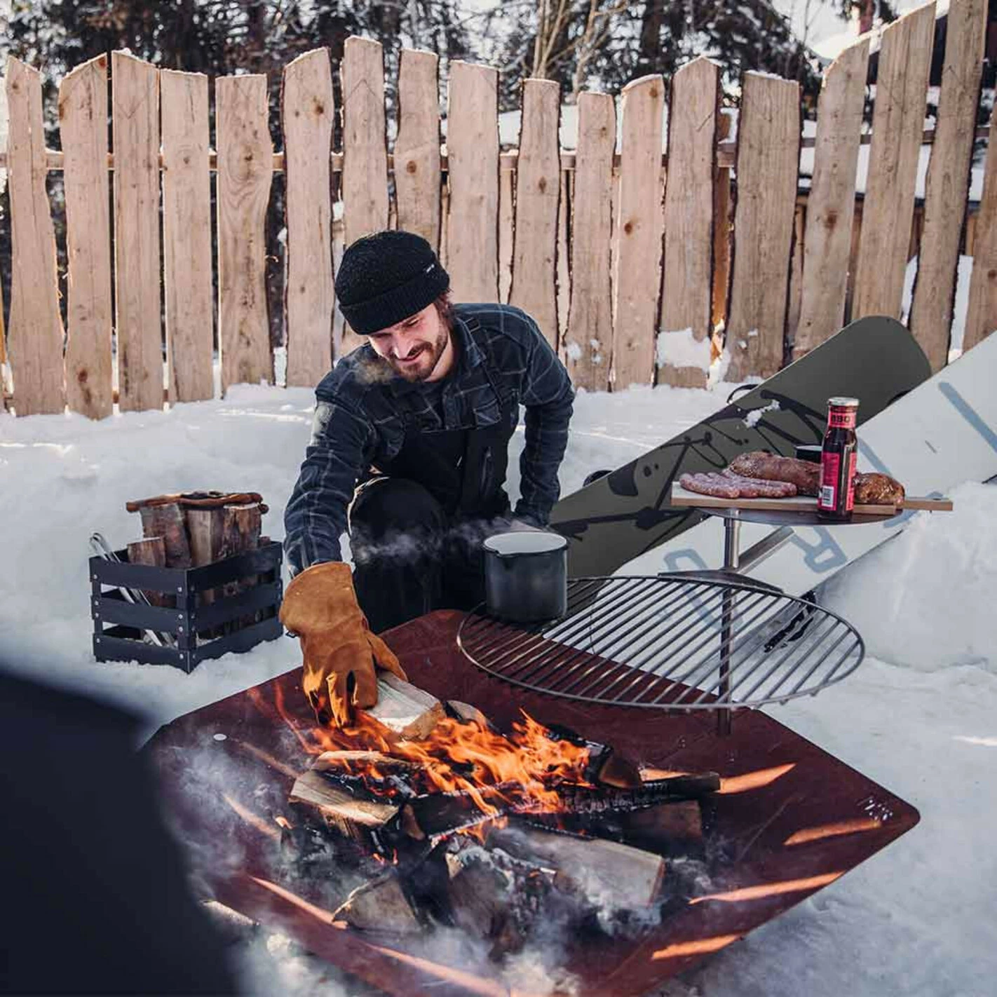 Saisissez quelques grillades au-dessus de vos braises incandescentes en profitant aussi de l’ambiance chaleureuse du feu de camp !