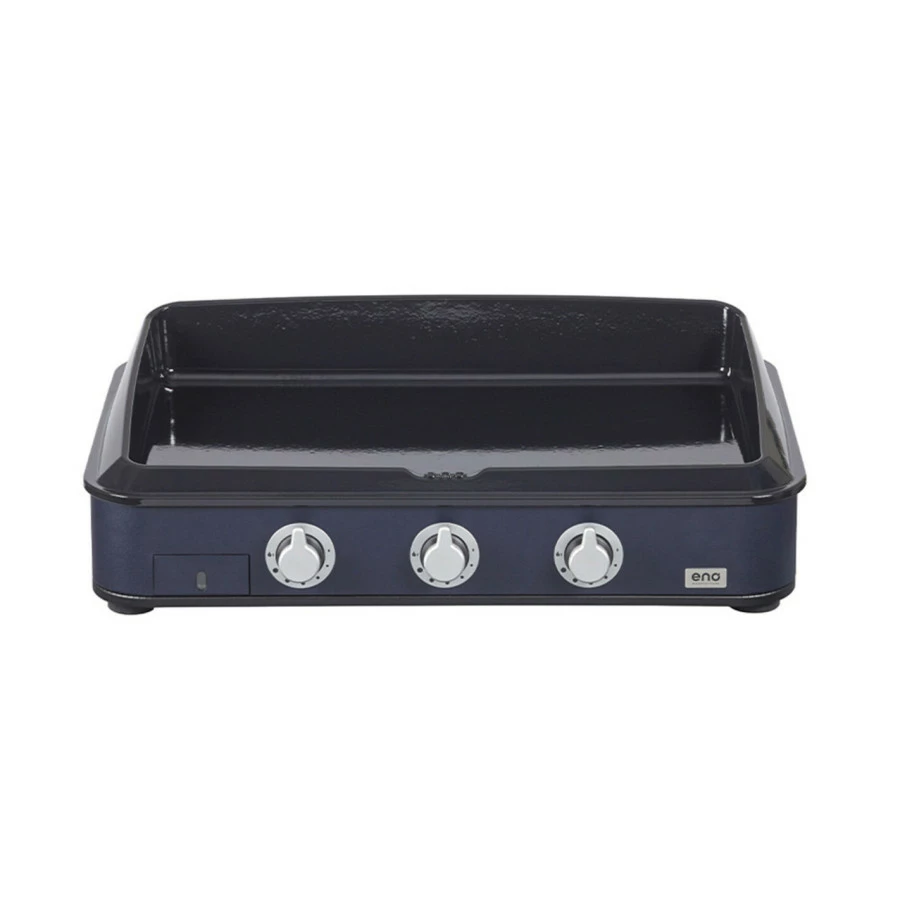 Cette plancha gaz Enosign 80 est un appareil de cuisson haut de gamme doté de 3 brûleurs ronds puissants (6,3 kW). Installés sous une plaque en fonte émaillée de 69 cm de long. Antiadhésive, elle retransmet une chaleur uniforme pour des cuissons saines pour environ 12 personnes. Sa surface de cuisson est posée sur un châssis en acier galvanisé thermolaqué bleu navy très résistant aux rayures et qui ne se décolore pas. Un bel objet design, moderne et puissant !
