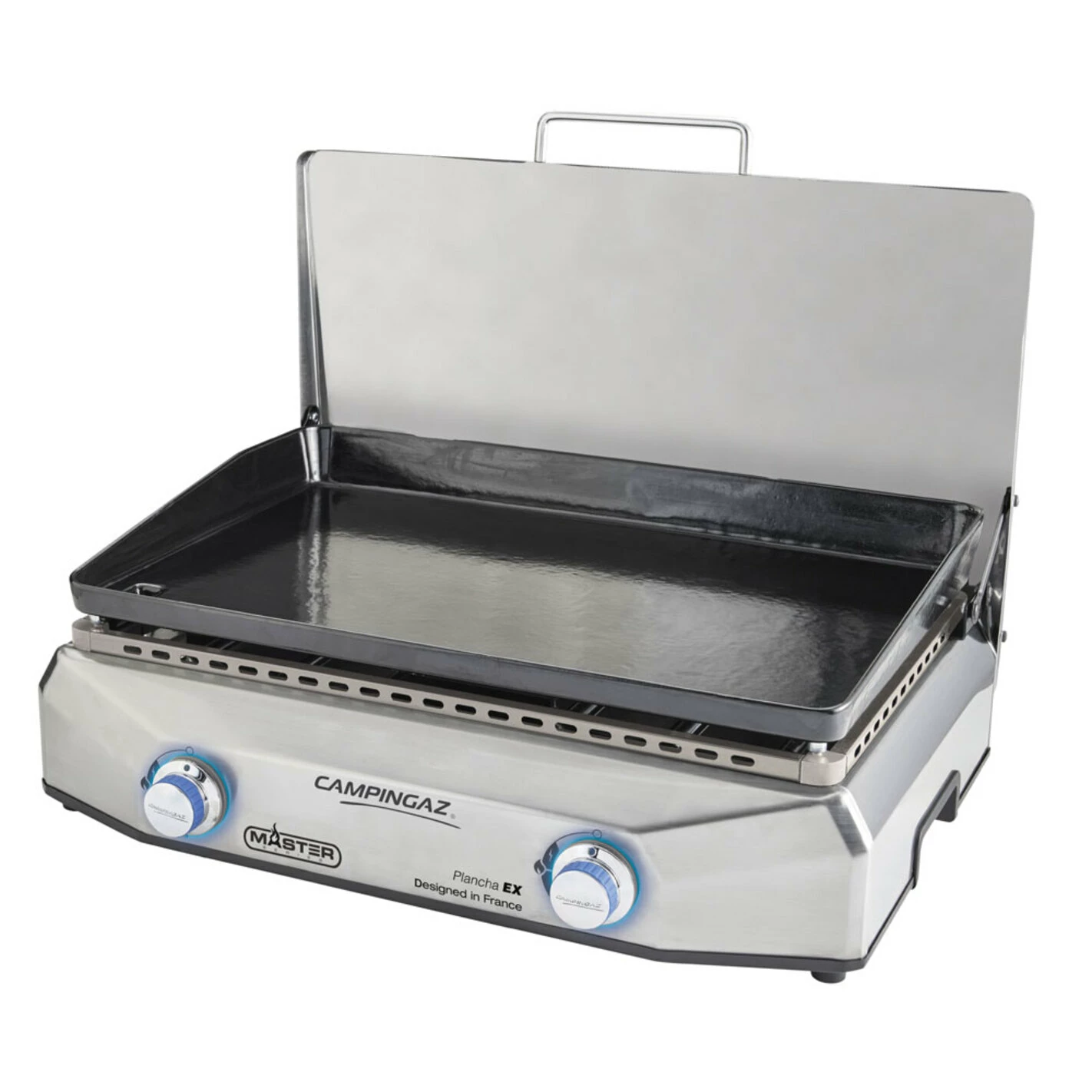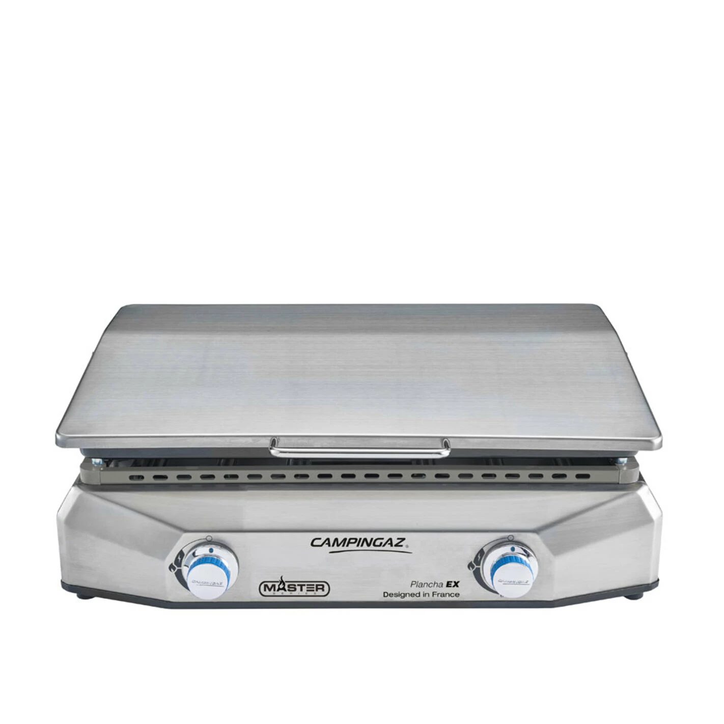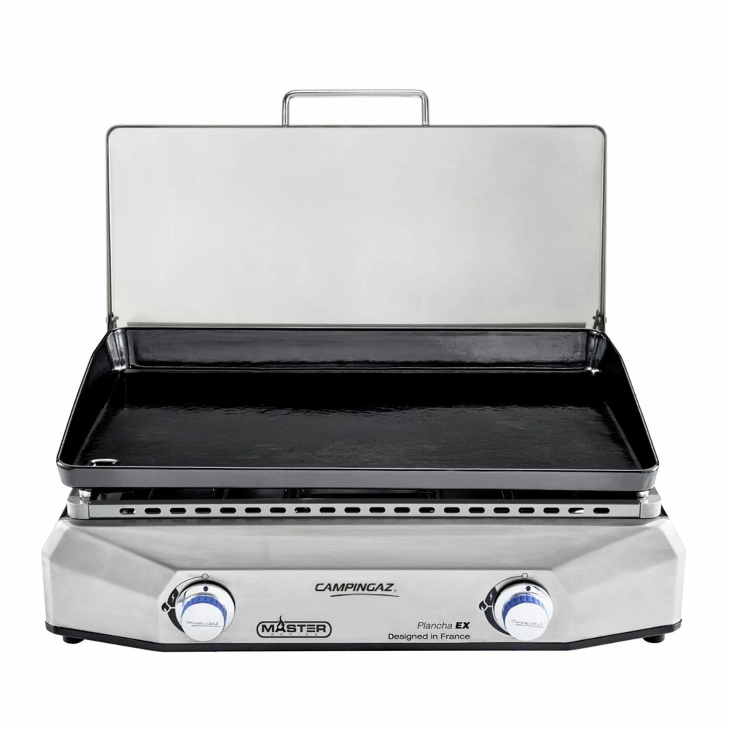 Entrée de gamme des modèles Master, la Plancha EX offre une plaque en fonte émaillée épaisse ainsi qu’un châssis et un couvercle sur charnières en inox de haute qualité. Les brûleurs en acier inoxydable sont équipés de la technologie Blue Flame comme pour l’intégralité des planchas à poser Campingaz.