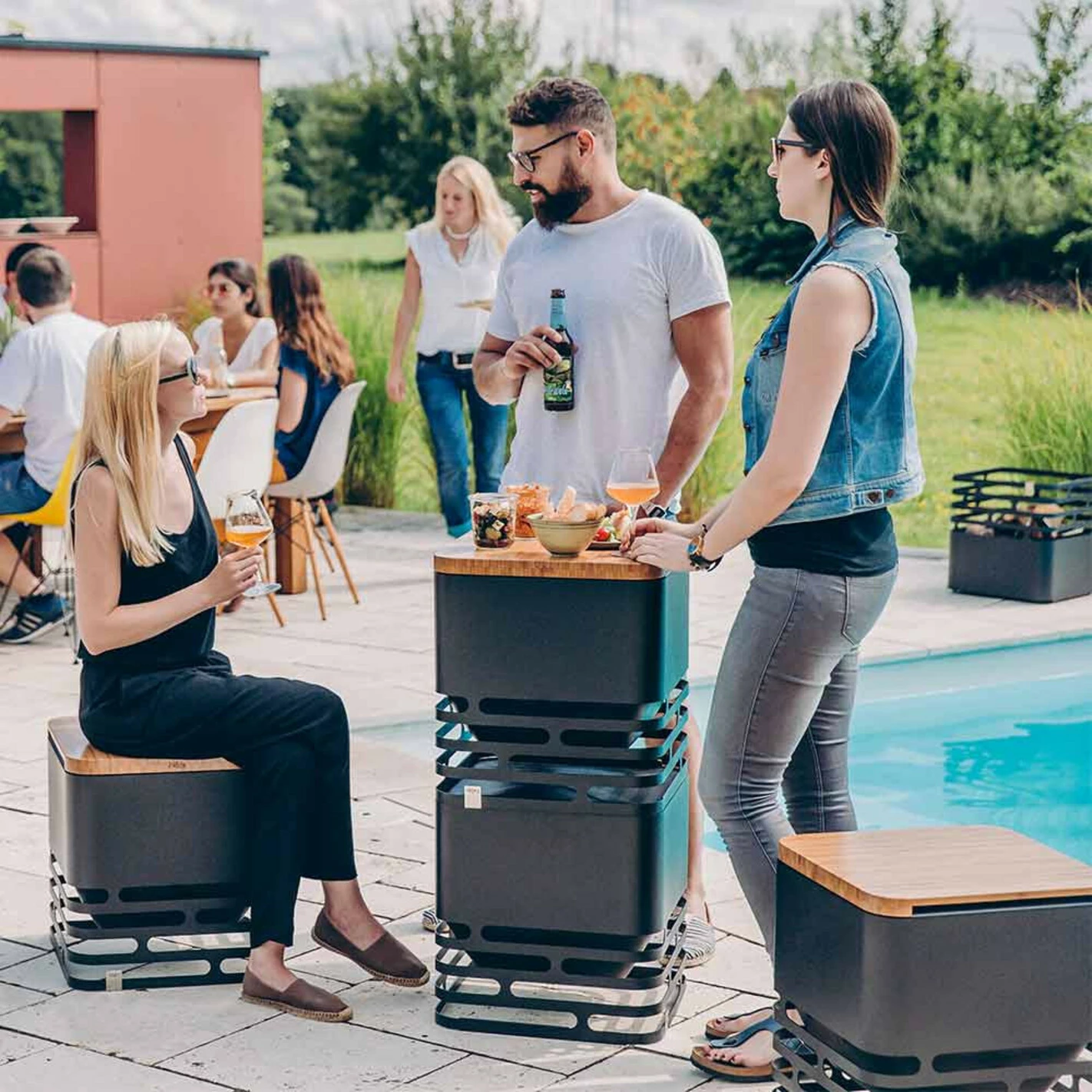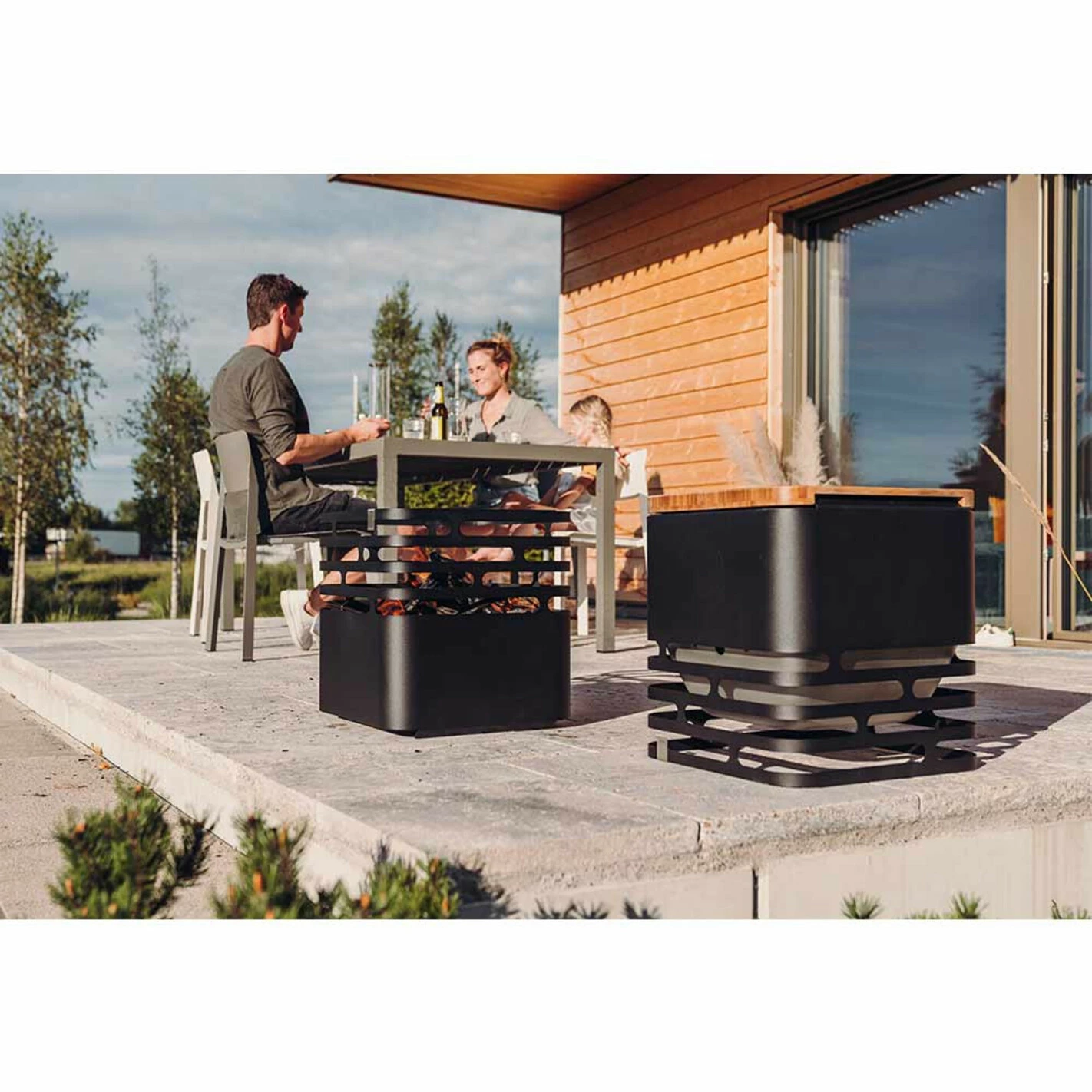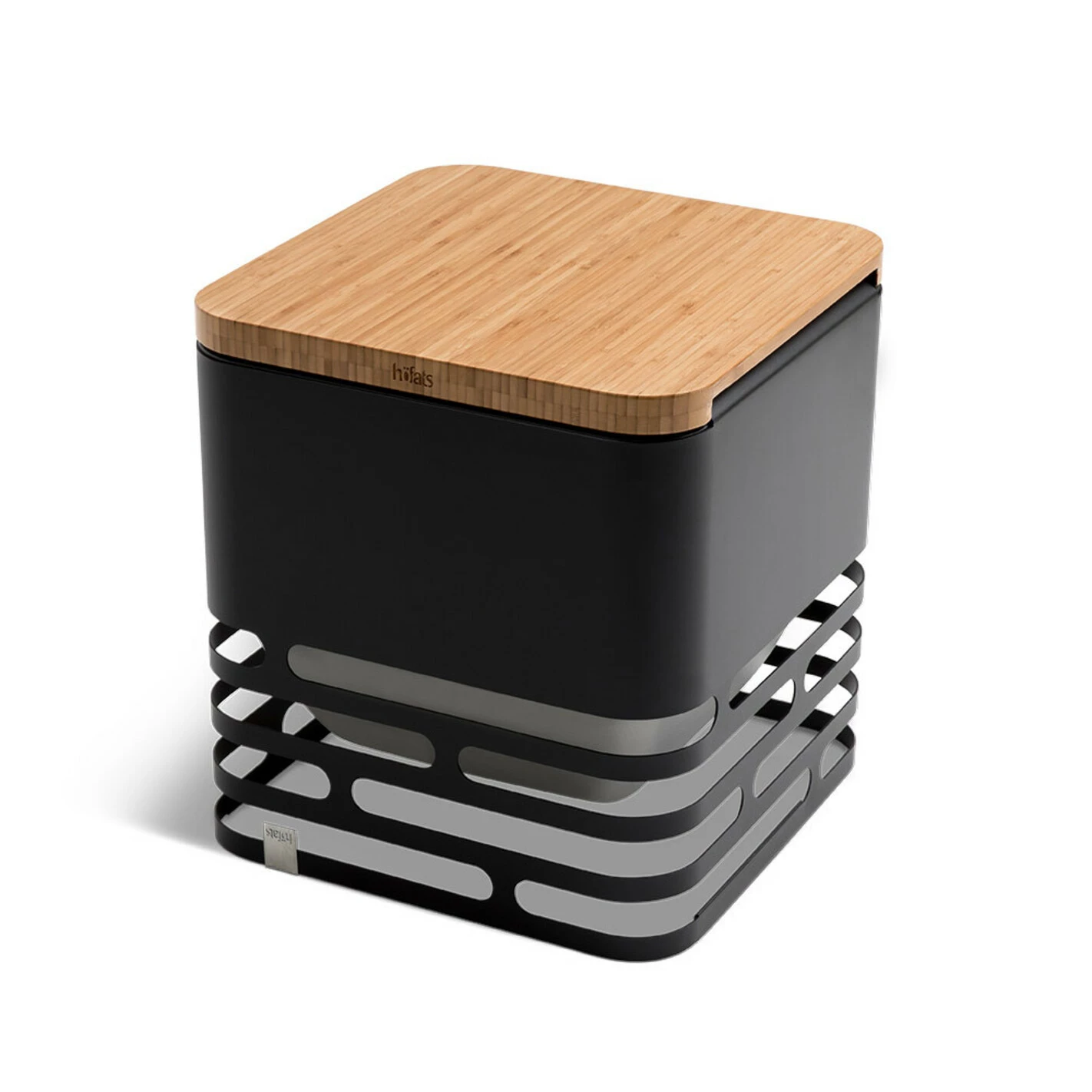 Transformez votre brasero Cube Höfats en un meuble de jardin très design grâce à l’ajout de cette tablette en bambou parfaitement adaptée.